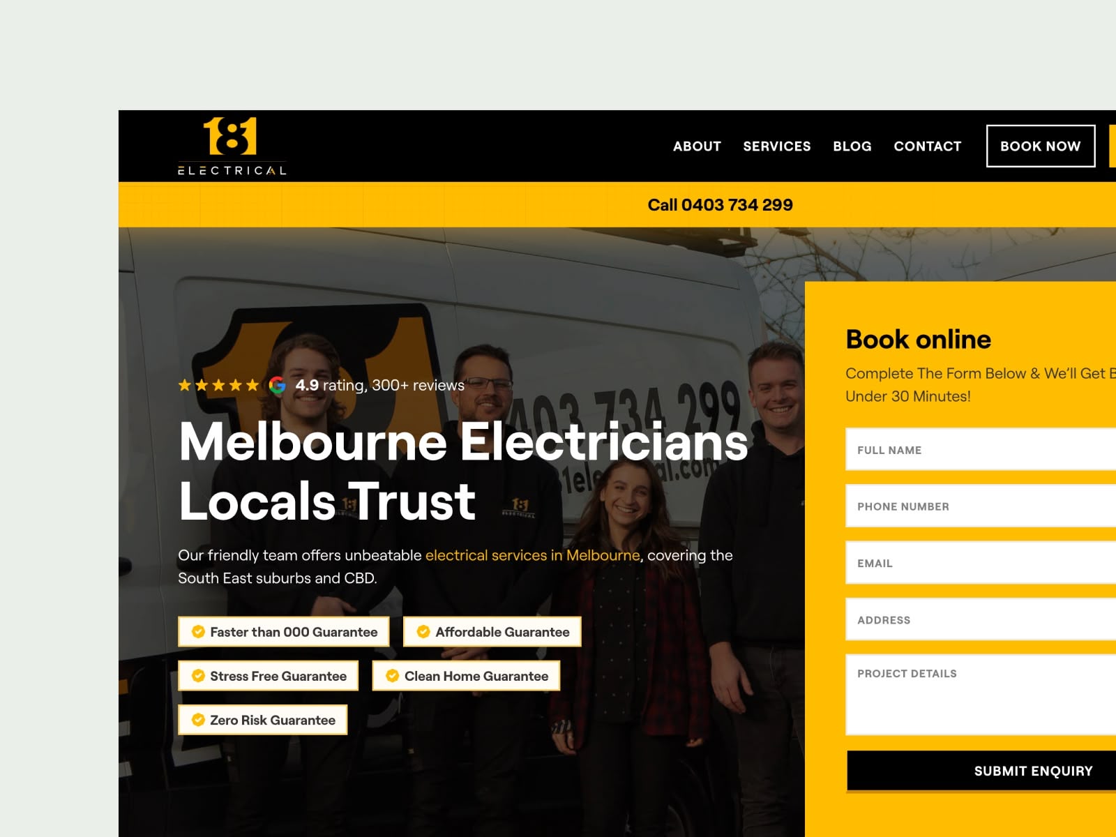 The 181 Electrical team has a marketing website that helps them rank in local SEO search terms and drive new leads to the business.