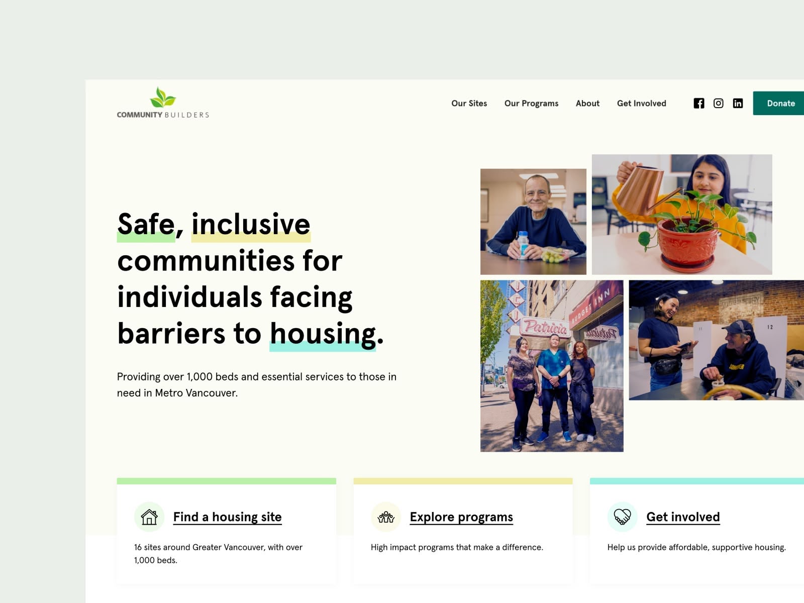 Community Builders now has a beautiful website built not only to help attract new donors, but also to educate visitors about their broad range of programs and housing options.