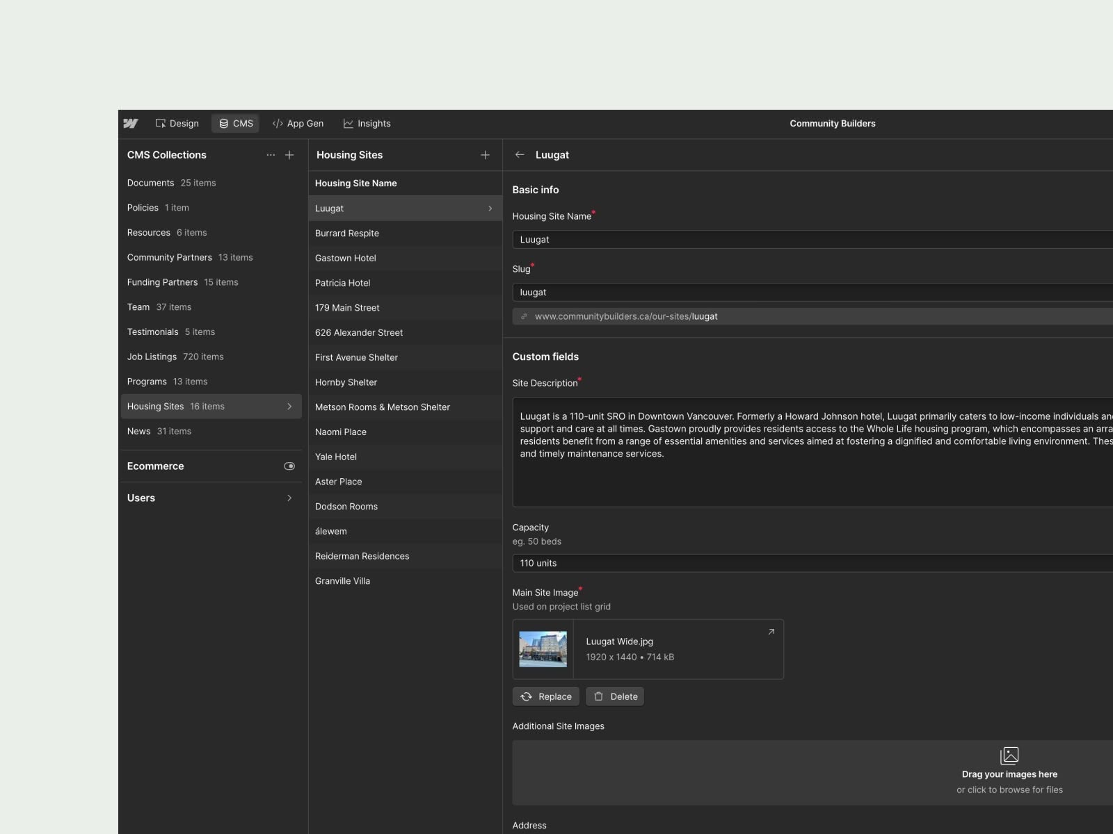 It was difficult to add new assets and wasn't reflective of their amazing suite of community programs and social housing sites around Vancouver.
