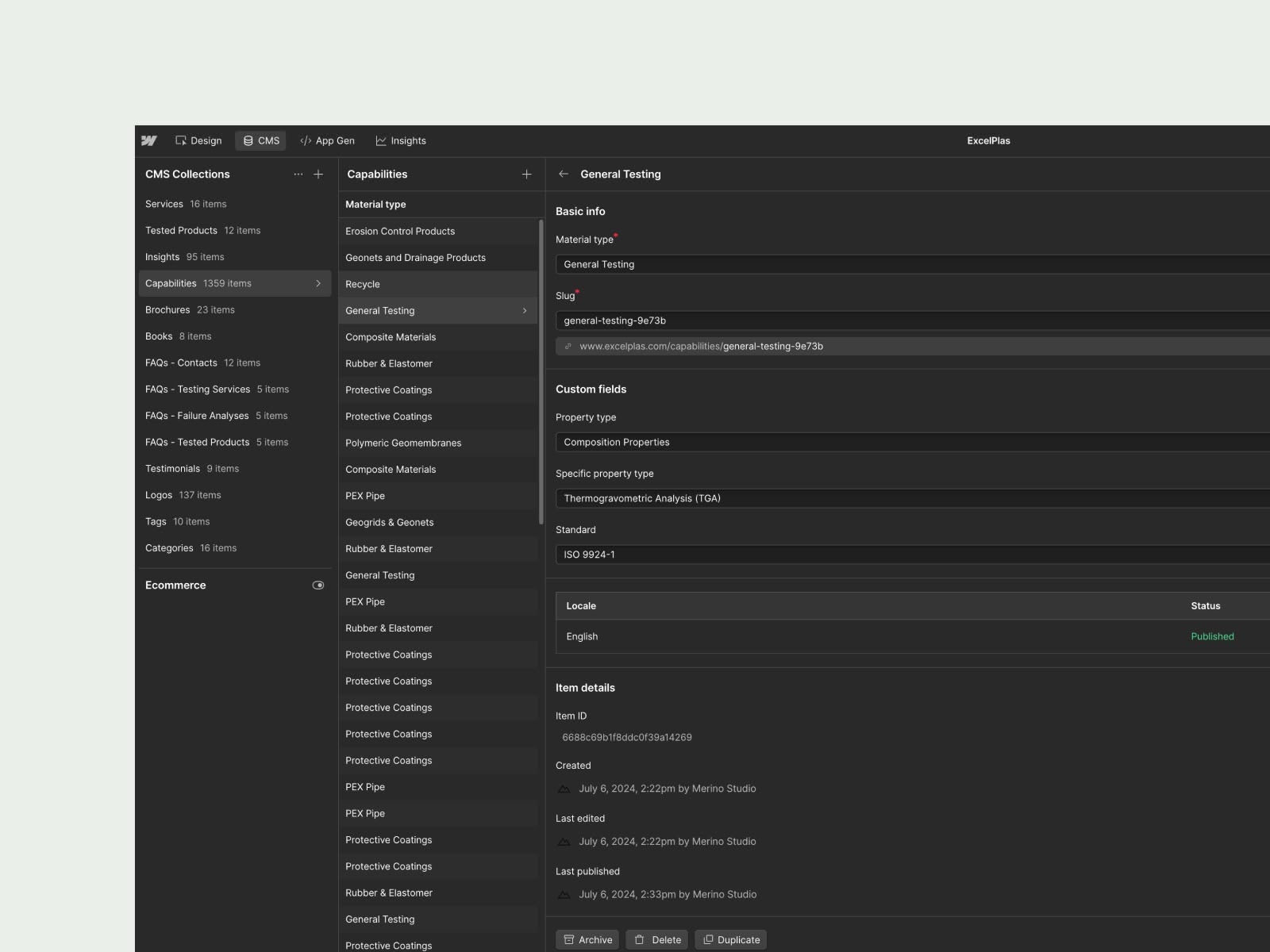 Using Webflow's native CMS capabilities, we built dozens of landing pages for each of ExcelPlas's services, tested products and emerging areas.