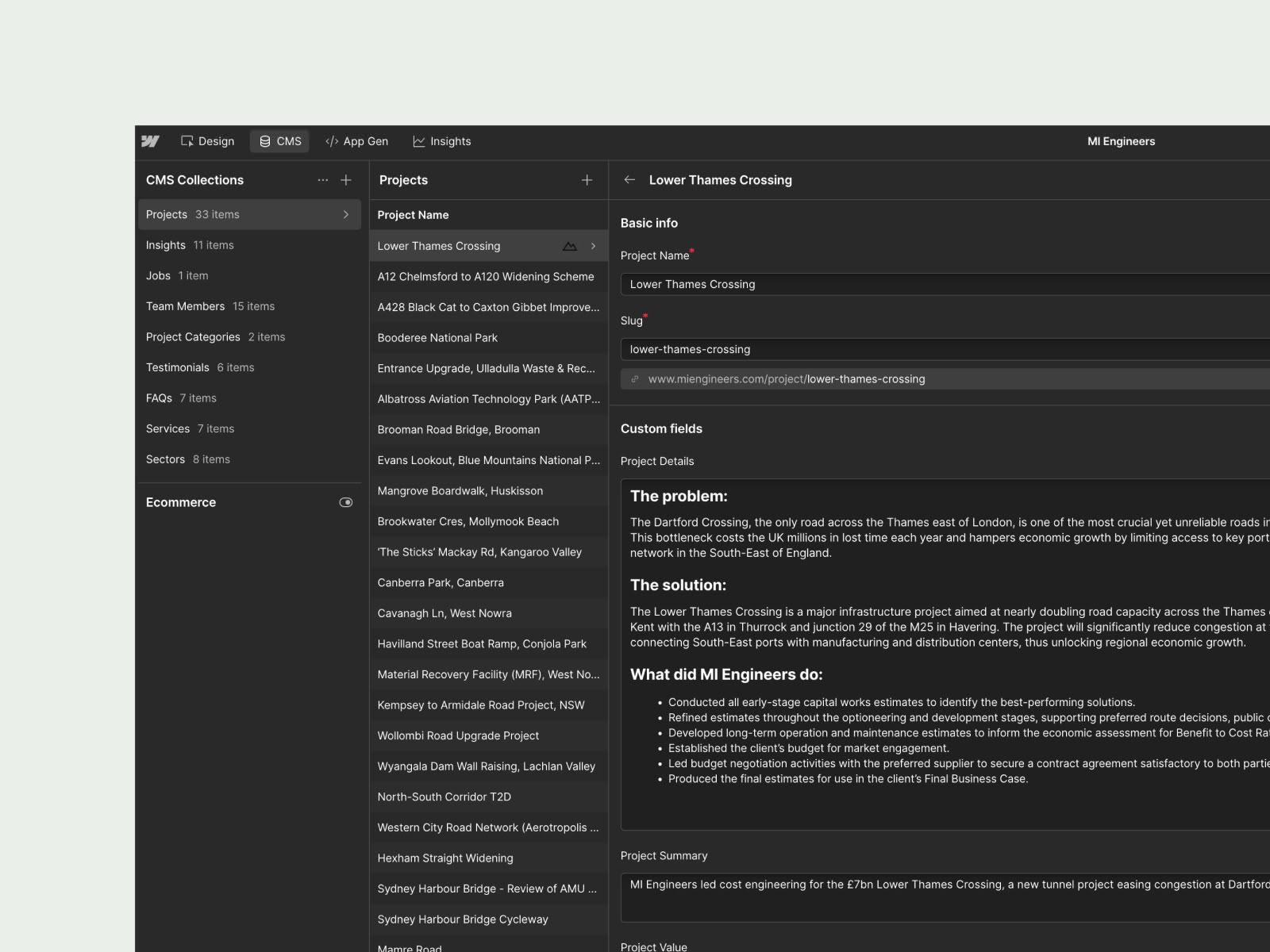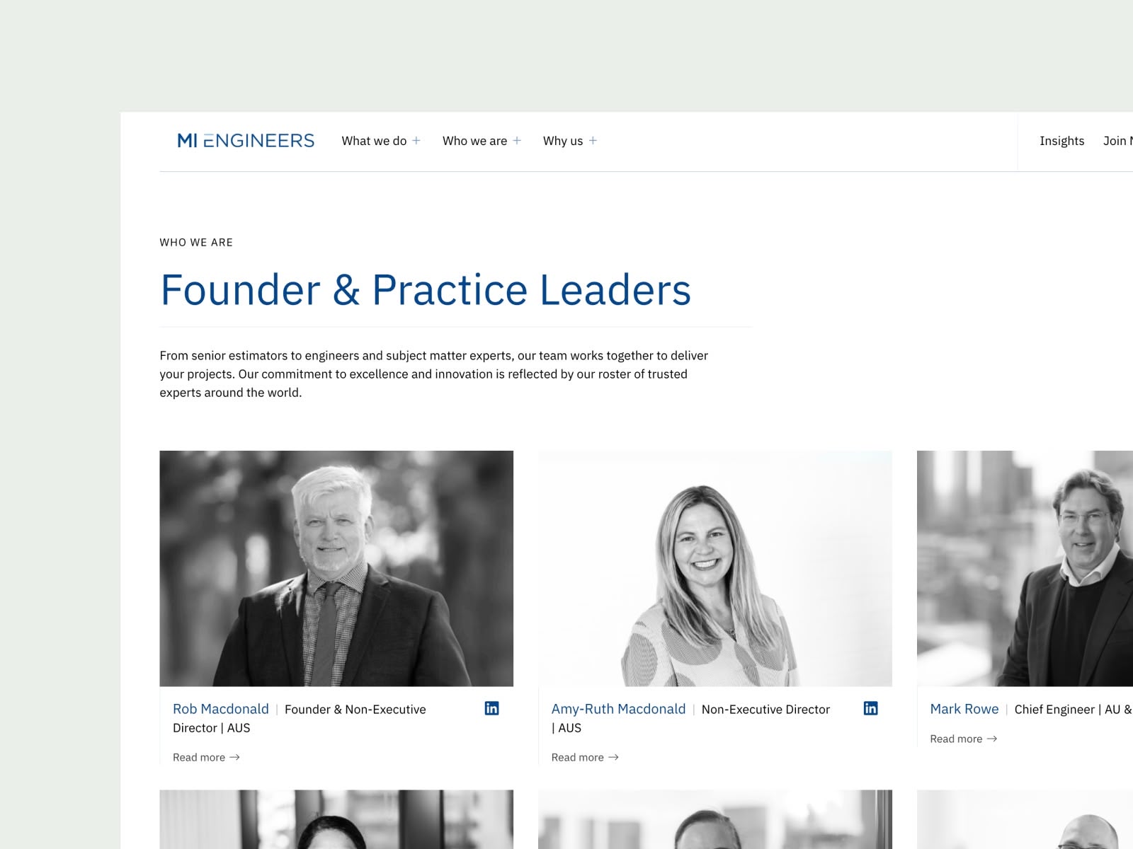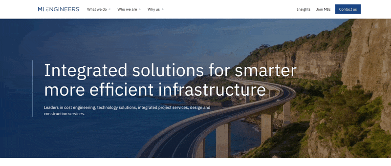 MI Engineers, with a global team and operations, does important and complex work on some of the world's biggest infrastructure projects. But their website didn't accurately reflect the impressive heights of their organisational mission.