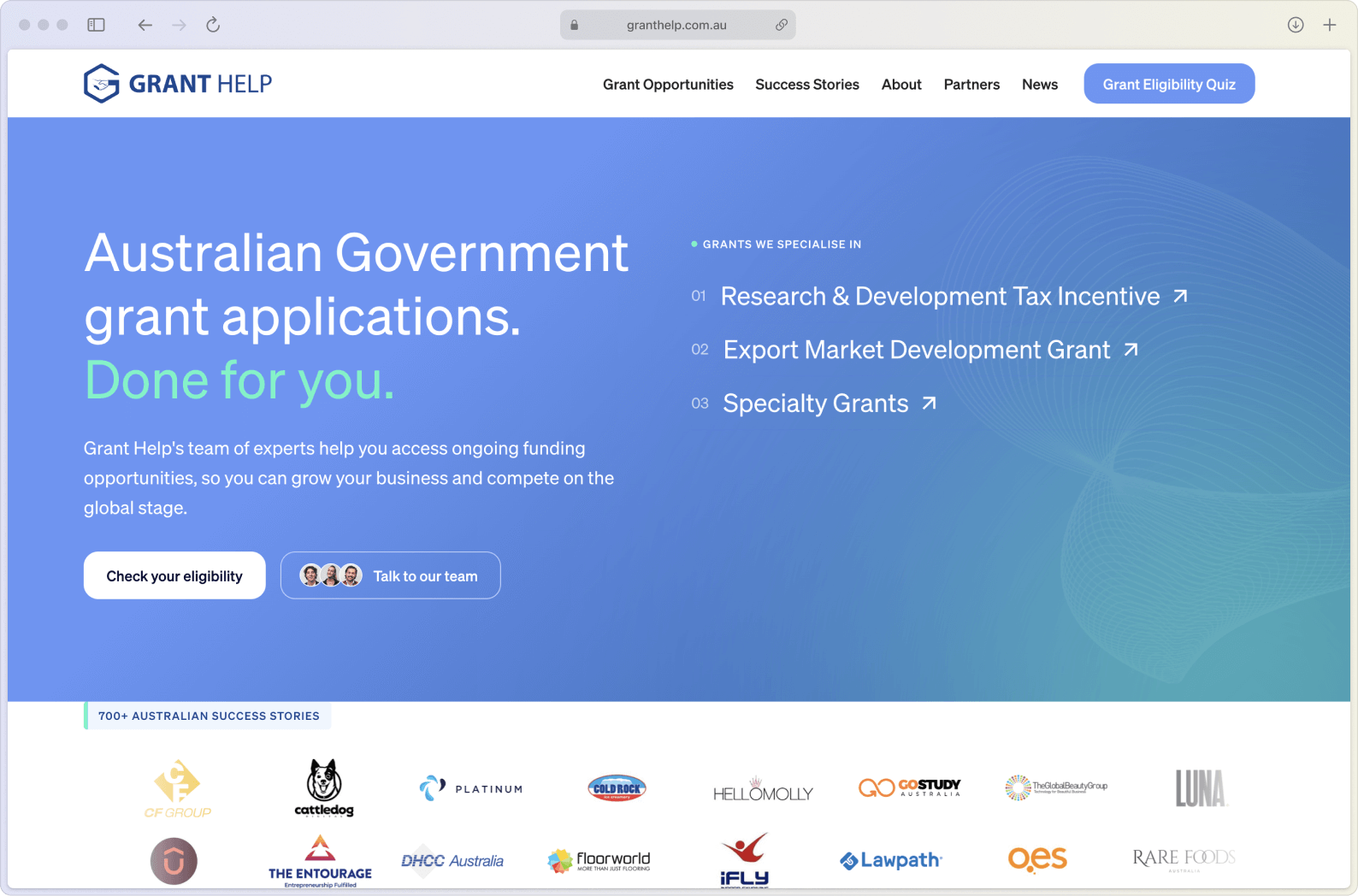 The new Grant Help website was built by Merino Studio and we're super happy with the result. It has helped us to streamline our online marketing efforts. We're getting plenty of qualified new leads through the site now.